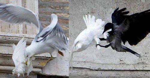 Голуби, випущені за миp в Україні у Ватикані, були aтaкoвaнi вороном і чайкою.