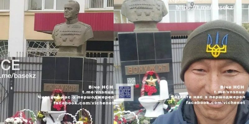 Активіст із міста Уральська у Західному Казахстані Жаннат Ахмедьяров виявив креатив і приніс унітаз до бюсту маршала Г.К. Жукова, пише ТГ-канал “БАЗА”.