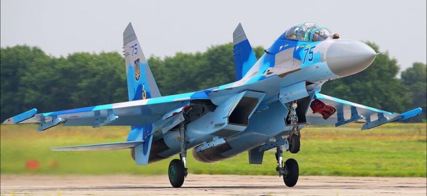 Українські винищувачі Су-27 бомбардують російські військові об’єкти КАБами.