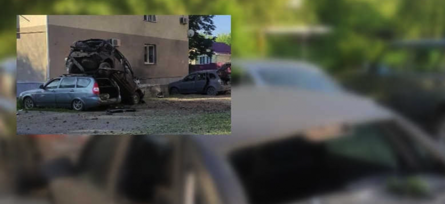 На опублікованих кадрах із місця подій видно, що внаслідок удару пошкодження отримали автомобілі та будівлі. Одну з машин від вибухової хвилі закинуло на дах іншого транспортного засобу.