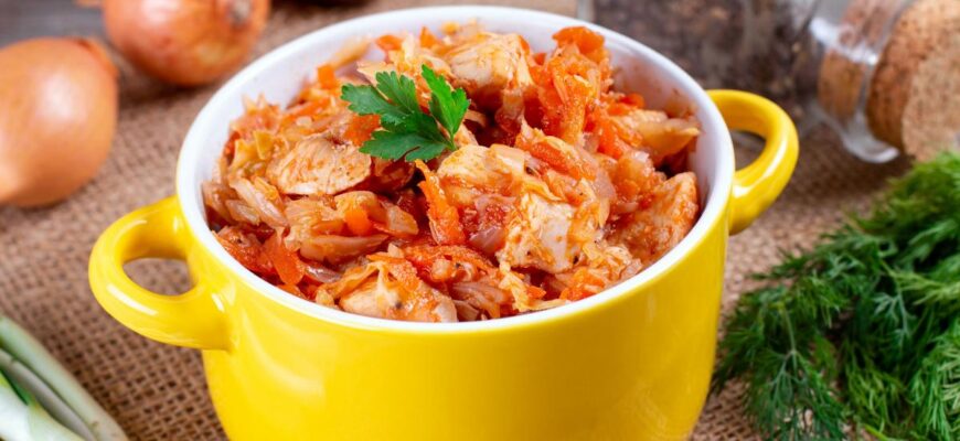 Капусту можна тушкувати як “соло”, так і з м’ясом, сосисками, грибами, квасолею або чорносливом. Тушкована капуста – корисна й ситна