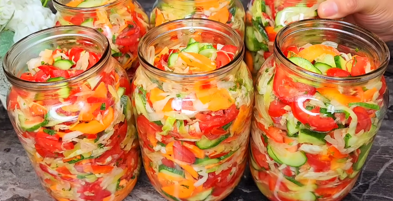 Беремо: Капуста – 2кг Морква -1,5 кг Перець болгарський-1,5 кг Огірки – 1,5 кг Помідори – 2кг Гострий перець – 3 шт (не любиш гостре, бери менше) Сіль – 4 ст.