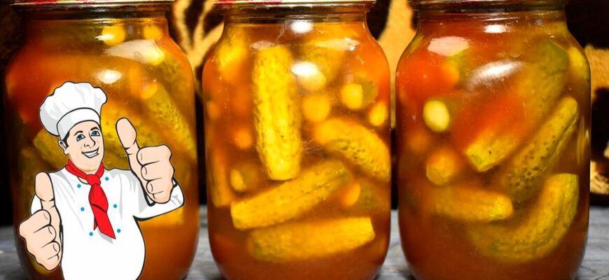 Салат з огірків з томатним соусом виходить в міру гострим і пряним. Дуже смачно з печеною картоплею і кашею. Ця заготовка — відмінний варіант утилізації