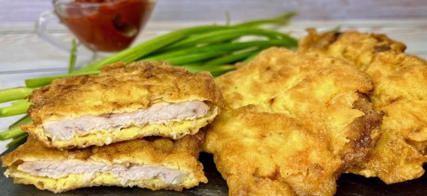 Відбивні по цьому рецепту виходять надзвичайно смачними. Весь секрет – у приготуванні кляру. Він не лише додає смаку страві, а й робить м’