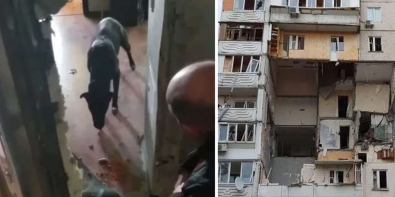 У Бучі Київської області активісти знайшли собаку, який жив у напівзруйнованій багатоповерхівці. Пес, якого залишили господарі, попри голод, продовжував