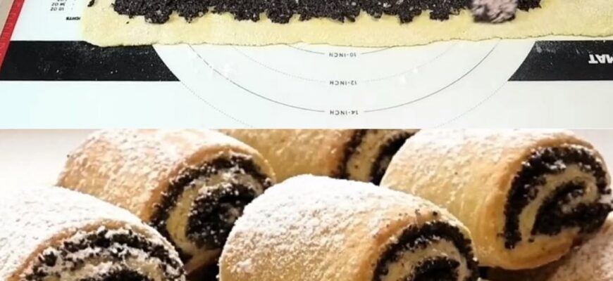 Ці рулетики часто називають «лінивцями» — рецепт дійсно простий і швидкий. Макову начинку можна замінити шматочками сухофруктів, змішаними з медом або
