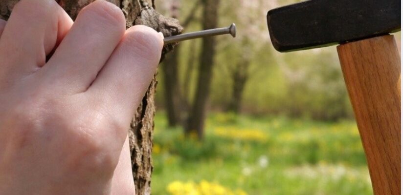 Цвяхи в стовбурі яблуні