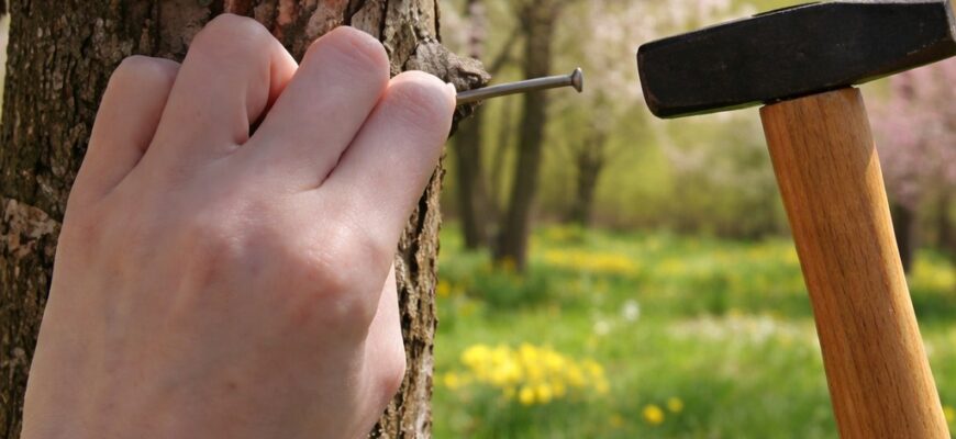 Цвяхи в стовбурі яблуні