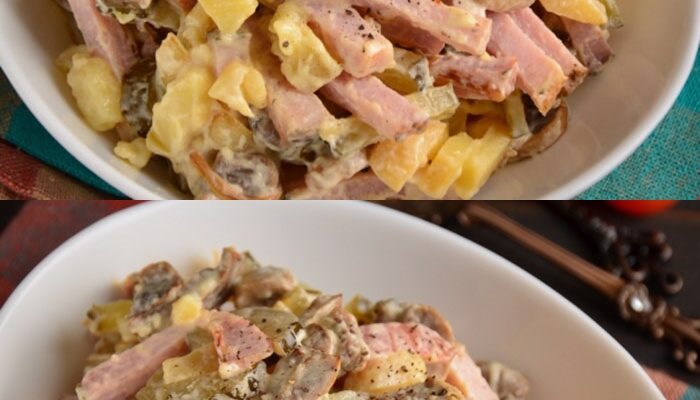 Покроковий процес приготування салата «Мисливець»
