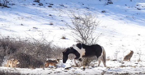 Відео нижче було зняте в засніженій зимовій Італії. Автор ролика, побачивши з якою вражаючою безпечністю кінь гуляє пліч-о-пліч зі зграєю вовків, вирішив зафіксувати цей дивовижний момент.