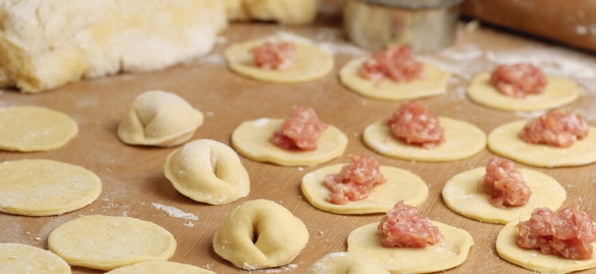 3. Замісіть тісто (воно виходить дуже м’яким і еластичним) і починайте ліпити пельмені або вареники.