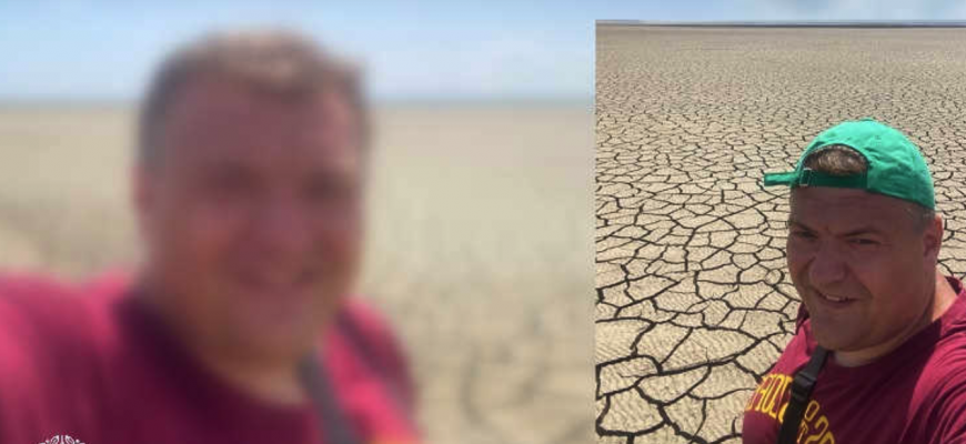 Фактично перебуваємо на березі старої річки Базавлук (права притока Дніпра – ред.). Це висохле водосховище. Підсихає мул… Муляка не дуже глибока, десь 20 см, не більше, ближче до води – по коліна», – сказав журналіст.