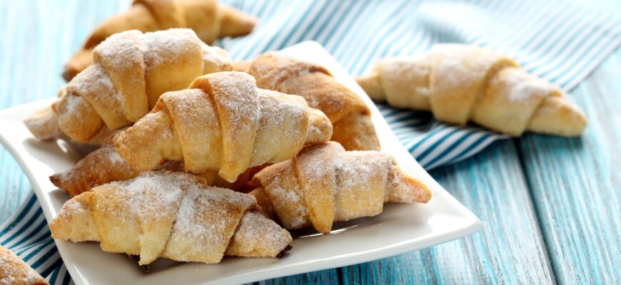 Рогалики із згущеним молоком – улюблені в моїй родині. Коли я їх печу, діти навіть не дають їм охолонути, з’їдають все відразу і просять ще. Рецепт не складний, з ним впораються навіть господині-початківці.