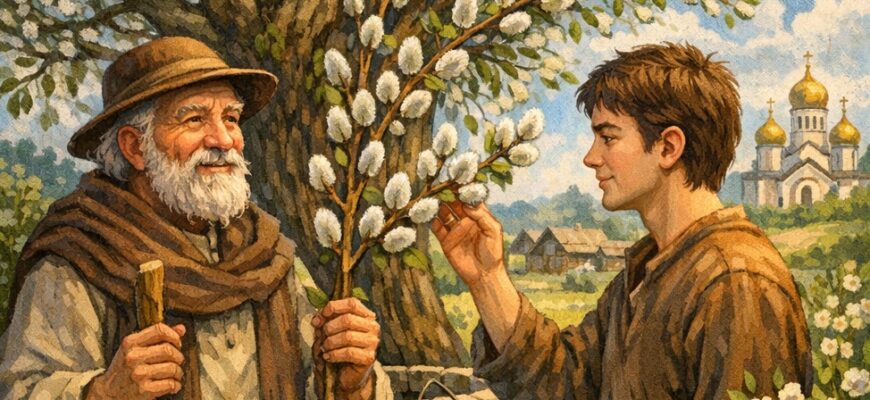 Щороку навесні, коли приходила Вербна неділя, люди зрізали гілочки верби, несли їх до храму, а потім — додому, як символ життя й надії. Але садівник ніколи не зрізав гілок зі своєї верби.