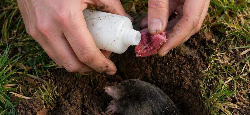 Один із варіантів — заливання нір водою. Для цього в хід крота вставляють шланг і поступово подають воду. Але потрібно врахувати, що цей спосіб не швидкий: він потребує багато води, часу і часто повторення протягом кількох днів.