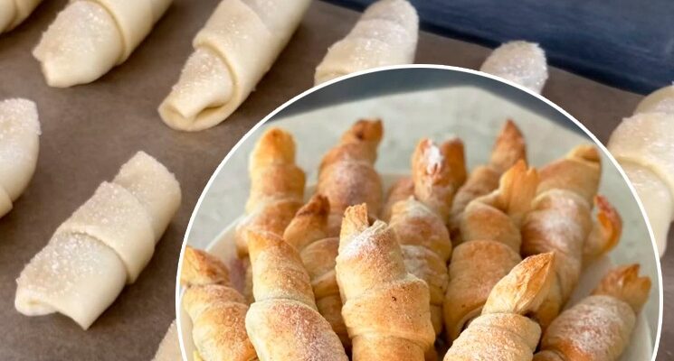 4. Подаємо: Готові рогалики посипаємо цукровою пудрою і подаємо до чаю або кави.