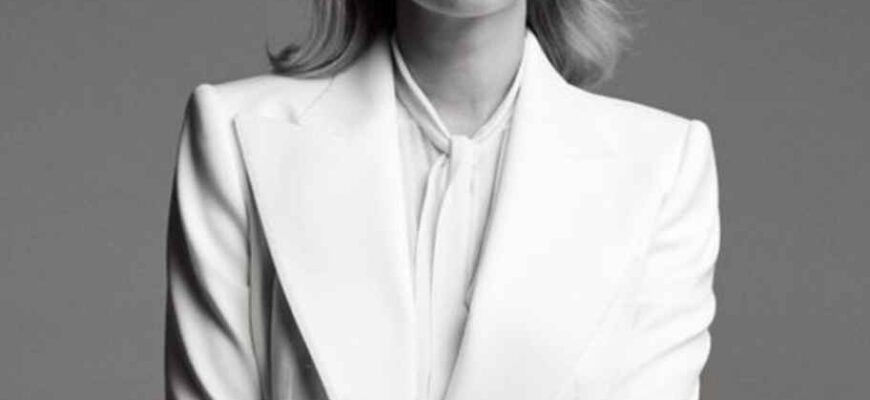На відео вона постала у розкішній білій сорочці з чорною квітковою вишивкою і пишними рукавами, яку поєднала з чорним низом і широким шкіряним поясом.