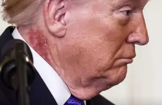 Під час церемонії вручення нагород на шиї Дональда Трампа помітили дивну червону пляму. Білий дім заявив, що подразнення з’явилося внаслідок профілактичного лікування шкіри.