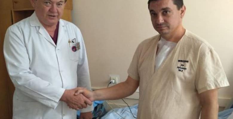 Пізніше військовий, додав бойовий медик, звернувся до цивільних лікарів, пройшов обстеження, здав різні аналізи. Та вже на комп’ютерній томографії в нього знайшли осколок у серці. В серцевому м’язі — великий уламок. Захисник воював з ним у серці два місяці. Воїна терміново евакуювали та в Києві, в Інституті серця, провели операцію. Хірургічну бригаду очолював директор Національного інституту серцево-судинної хірургії ім. Амосова Василь Лазоришинець (на фото у заголовку з пацієнтом).