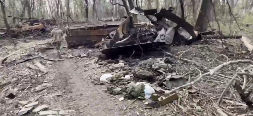 Наші захисники здійснили вихід на дану локацію і зняли відео, на якому видно велику кількість розбитої техніки і поламаних дерев. Скдажаєтсья враження наче після апокаліпису.