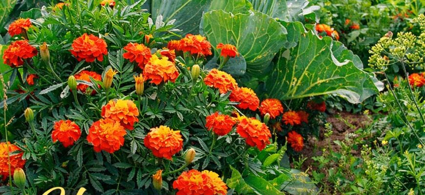 Садіть чорнобривці між овочами — біля томатів, картоплі, капусти.