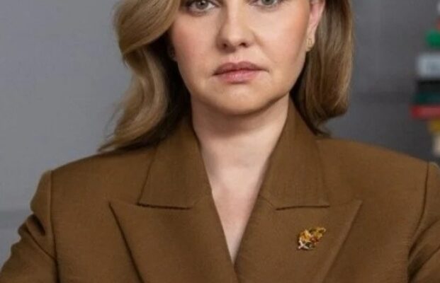 Перша леді постала на відео у діловому жакеті карамельно-коричневого відтінку, до якого прикріпила брошку у вигляді листочка. Її образ доповнила гарна хвиляста зачіска, ніжний макіяж і лаконічні золоті сережки.