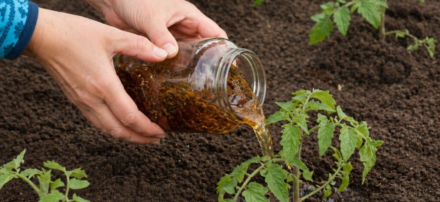 Отриманий концентрат використовуйте так: 100 мл настою розведіть у 3 літрах відстояної води. Перед підживленням обов’язково полийте рослини звичайною водою. Застосовувати такий розчин достатньо раз на 3–4 тижні.