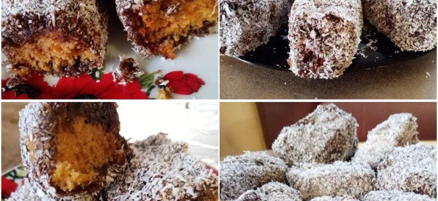 Нарізати бісквіт палочками, занурити в глазурь, обкачати в кокосовій стружці.