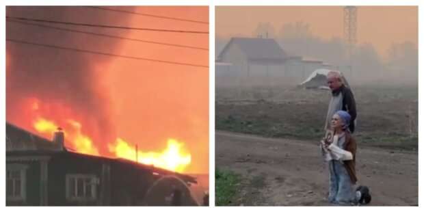 “Вогонь поки що тільки розходиться — він уже загрожує жителям сусіднього села. Одна з місцевих мешканок не сподівається на пожежників і просить допомоги у Бога”, – пишуть у російських ЗМІ.