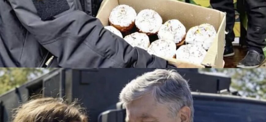 Порошенко: “Я хоть трохи поспав, а от Марина взагалі не спала – цілу ніч пекла для вас пасочки. І тепер кожен отримає паску від Марини