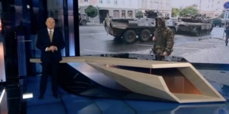 “Коли практично ніхто в суспільстві й державі не підтримав заколот, стало ясно, що похід на Москву позбавлений всякого сенсу. Бензин біля броньованої колони скінчився, а відчуття, що ватажок заколотників Пригожин ось-ось перетвориться на криваву пару посилилося”, – ухмиляючись каже телеведучий.
