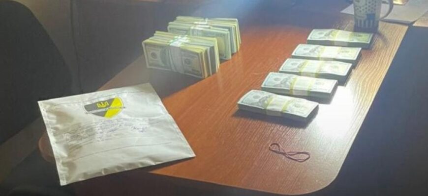 Одного з прокурорів затримали після одержання хабара. Йому повідомили про підозру за частиною 4 статті 368 КК України (одержання хабара в особливо великому розмірі або службовою особою, яка займає особливо відповідальне становище).