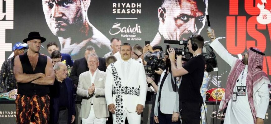 До боксерського поєдинку між Олександром Усиком і Тайсоном Ф’юрі за звання абсолютного чемпіона світу в надважкій вазі залишається менше години. На даний момент українець та британець вже прибули на Kingdom Arena в Ер-Ріяді, де відбудеться бій.