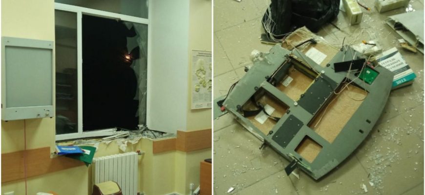 За ідеєю, загарбники подумали, що це був український ударний дрон і з пропагандистською метою вирішили опублікувати фото розбитого вікна та уламків безпілотника.