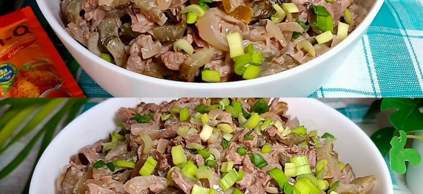 Готувати цей салат з печінкою нескладно, а виходить ситно. Можна використовувати як перекус чи повноцінний прийом їжі.