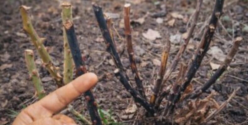 Чому чорніють стебла троянд після зими