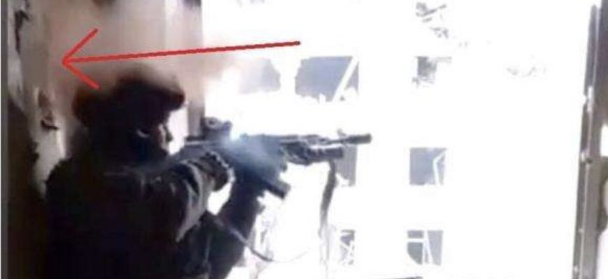 На оприлюднених кадрах видно, як куля противника влучає у стіну всього за кілька сантиметрів від голови військового, який саме вів вогонь по російських окупантах із вікна зайнятої ЗСУ будівлі. При цьому українських солдатів даний інцидент не стільки налякав, скільки розвеселив.