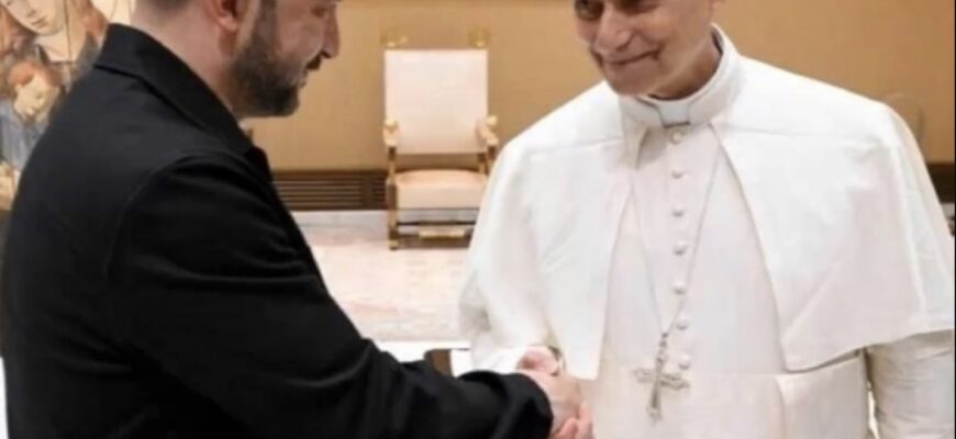 Після інавгураційної меси Володимир і Олена Зеленські провели аудієнцію з новим Папою Римським Левом XIV.