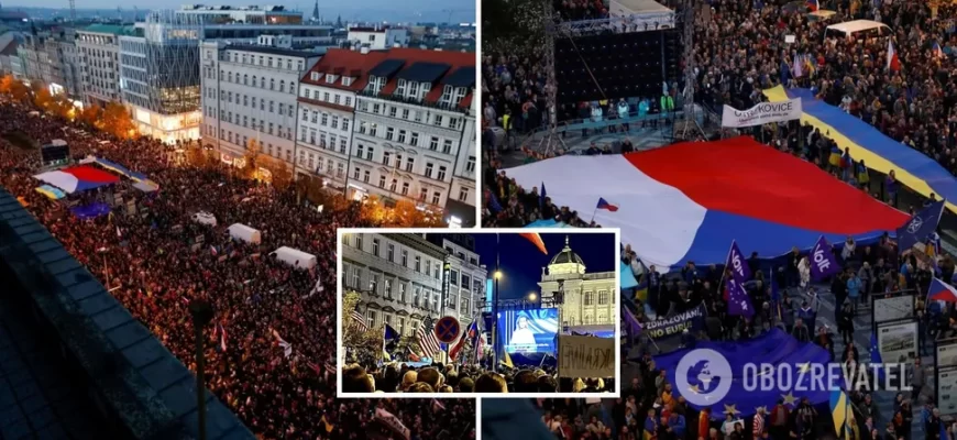 У Чехії в неділю, 30 жовтня, відбувся мітинг на підтримку України у її боротьбі з повномасштабною російською агресією. Також чехи виступали проти популізму низки проросійськи налаштованих політиків.