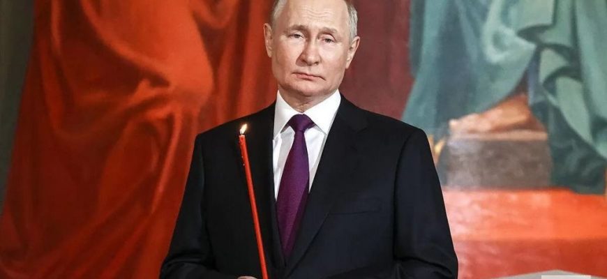 У очільника Кремля на шиї помітили шрам в формі літери “Z”. Сталося це під час його відвідин церкви на Великдень.