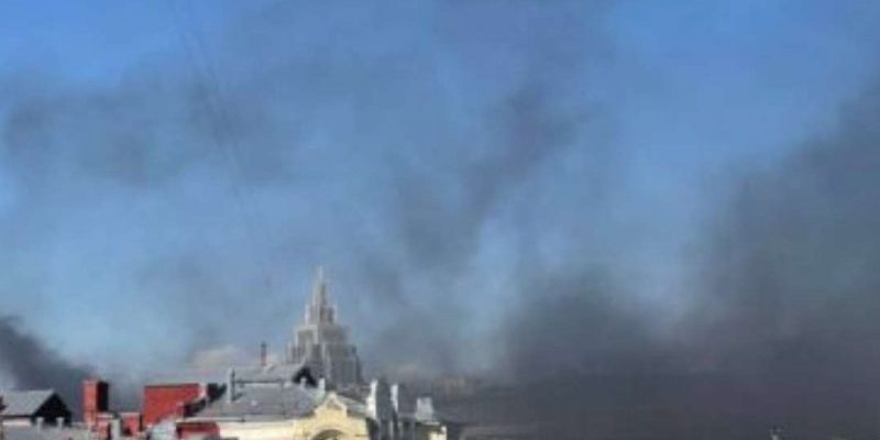 Над російською столицею видніється густий чорний дим.