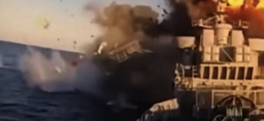 На відео, яке з’явилося в Мережі, видно, як надводний дрон із 450 кг тротилу, атакує судно.