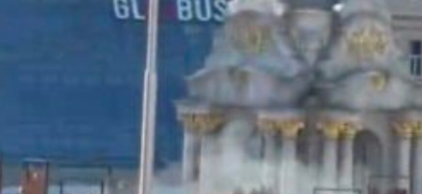 На кадрах біля монумента видно дим. За іншими даними з соцмереж, уламки начебто дрона «Шахед» впали не на сам монумент, а поряд із ним.
