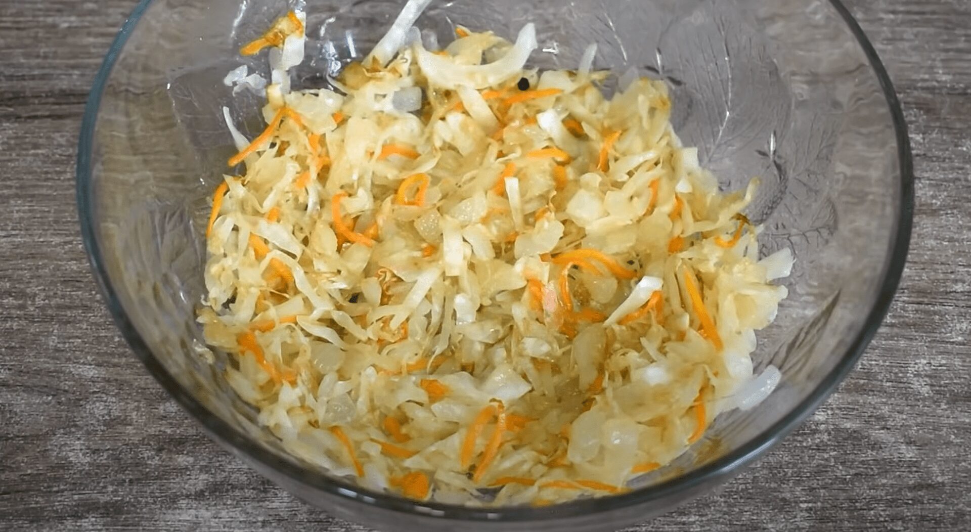 Спершу підготуємо квашену капусту – відіжміть від соку, налийте на сковороду трохи води і протушкуйте капусту до м’якості. Можна додати для аромату лавровий лист, кришку закрийте. Спочатку вода має ледве покривати воду, а під кінець повністю випаруватися.