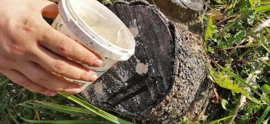 Після повного розкладання деревини видаліть залишки пня лопатою.