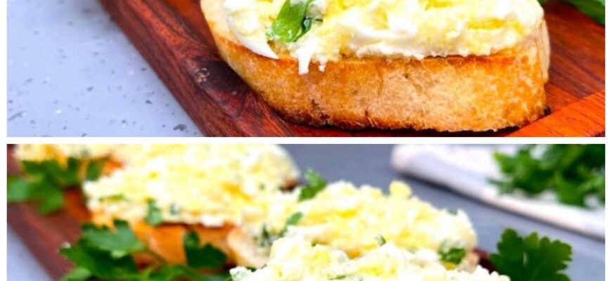 Відварюємо яйця, нарізаємо батон на тонкі шматочки. Скибочки хліба треба підсмажити на сухій сковороді з обох боків.
