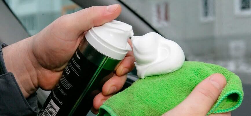 - Втирайте: за допомогою ганчірки розітріть піну по склу, доки воно не стане прозорим. На склі залишиться тонкий захисний шар.