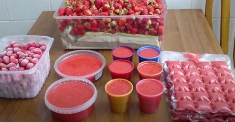 Існує три способи зберігання полуниці в морозильній камері. Приготуйте з неї пюре, змішайте з цукром або заморозьте цілою. Спочатку ретельно промийте ягоди, просушіть та видаліть плодоніжки.