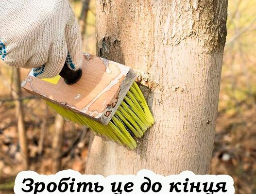 Осіння побілка допомагає захистити дерева від сонячних опіків, а також підтримує баланс температури між днем і ніччю. Крім того, вона є бар’єром для шкідників. Для побілки можна використовувати гашене вапно: на 1,5 частини холодної води додається 1 частина вапна.