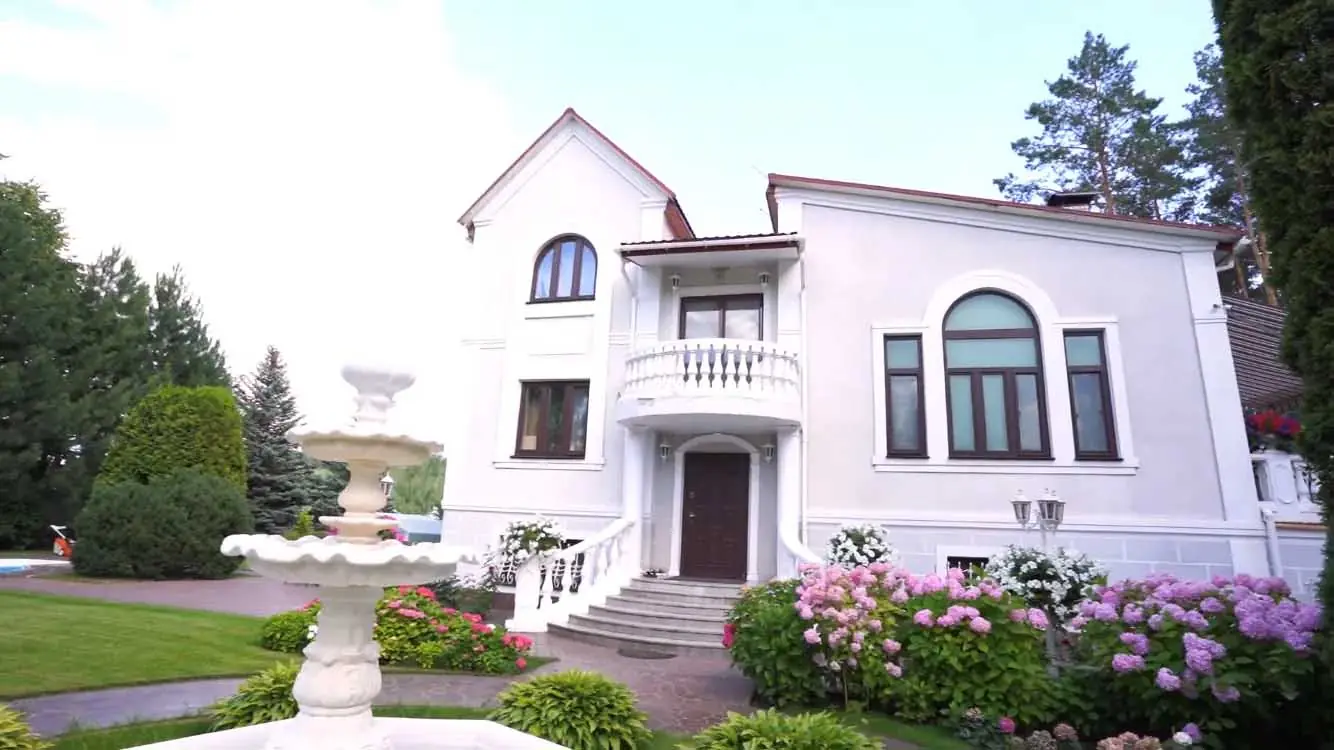 Раніше цю місцину використовували як дачу, та нині квартира в Києві стоїть пусткою, а подружжя перебралося жити на свіже повітря. Сам будинок має колони, балкон та терасу. Перед входом облаштований фонтан із нічною підсвіткою. Внутрішнім дизайном займалася Марина. Вона обрала стиль ампір.